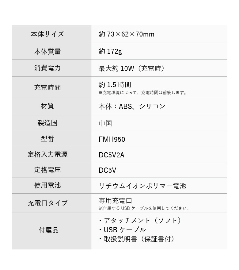 揉み上げる強さは3段階からアタッチメントは硬さ違いに2種類から