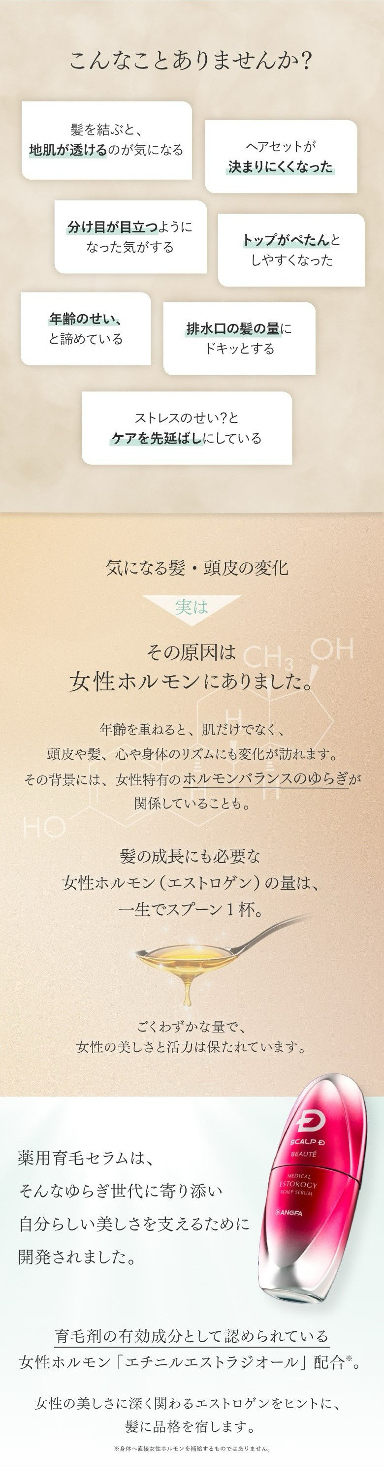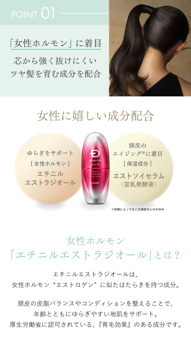 女性ホルモン成分を頭皮※2に補給し育毛・発毛を促進。